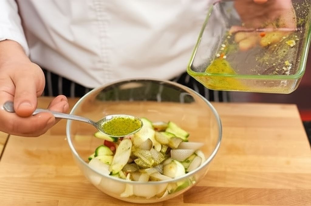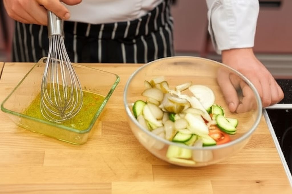 W miseczce połącz sos sałatkowy Knorr z 2 łyżkami wody i oliwą.