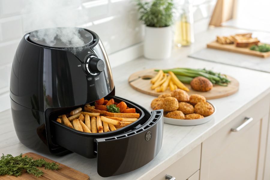 Airfryer wykorzystuje mechanizm szybkiej cyrkulacji gorącego powietrza, które jest rozprowadzane wokół żywności z prędkością nawet do 300 km/h. Temperatura wewnątrz urządzenia może osiągać nawet 200°C, co pozwala na: