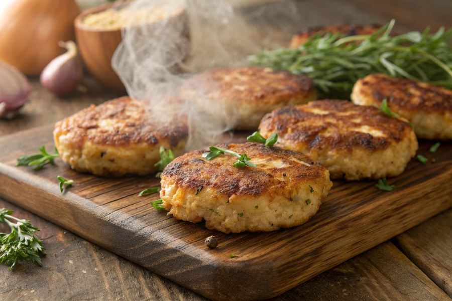 Niewykorzystane kotlety przechowuj w lodówce do 3 dni w szczelnym pojemniku. Najlepiej odgrzewać je na patelni (2 minuty z każdej strony) lub w piekarniku (180°C przez 10 minut) – zachowają wtedy chrupkość i aromat.