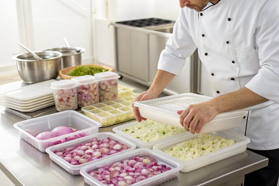 Technika szybkiego mrożenia polega na ułożeniu przygotowanych cebul na tacy w jednej warstwie i umieszczeniu ich w zamrażarce na 2-3 godziny. Ten wstępny etap zapobiega sklejaniu się cebul. Po wstępnym zamrożeniu, cebule można przełożyć do większego pojemnika lub worka.