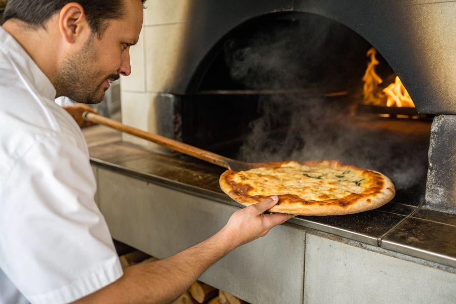 Wskazówka eksperta: Idealnie upieczona pizza ma złocisty, lekko przyciemniony brzeg (tzw. cornicione), równomiernie roztopiony ser i lekko zarumienione dodatki. Spód powinien być na tyle sztywny, by utrzymać dodatki bez zginania się.