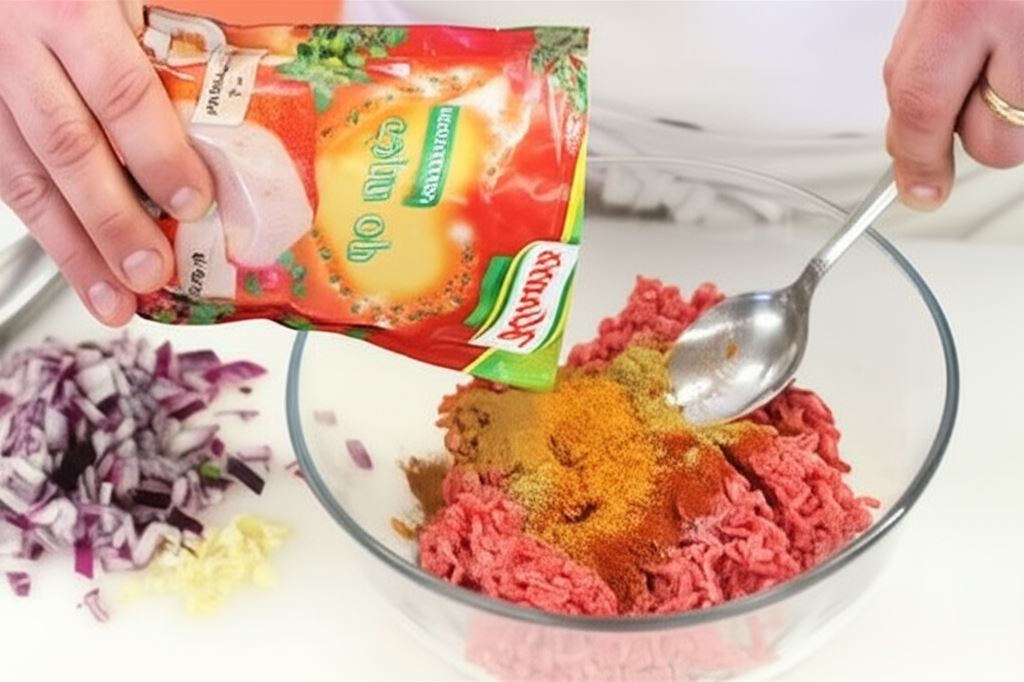 Wymieszaj mięso mielone z przyprawą Knorr i pozostałymi przyprawami.