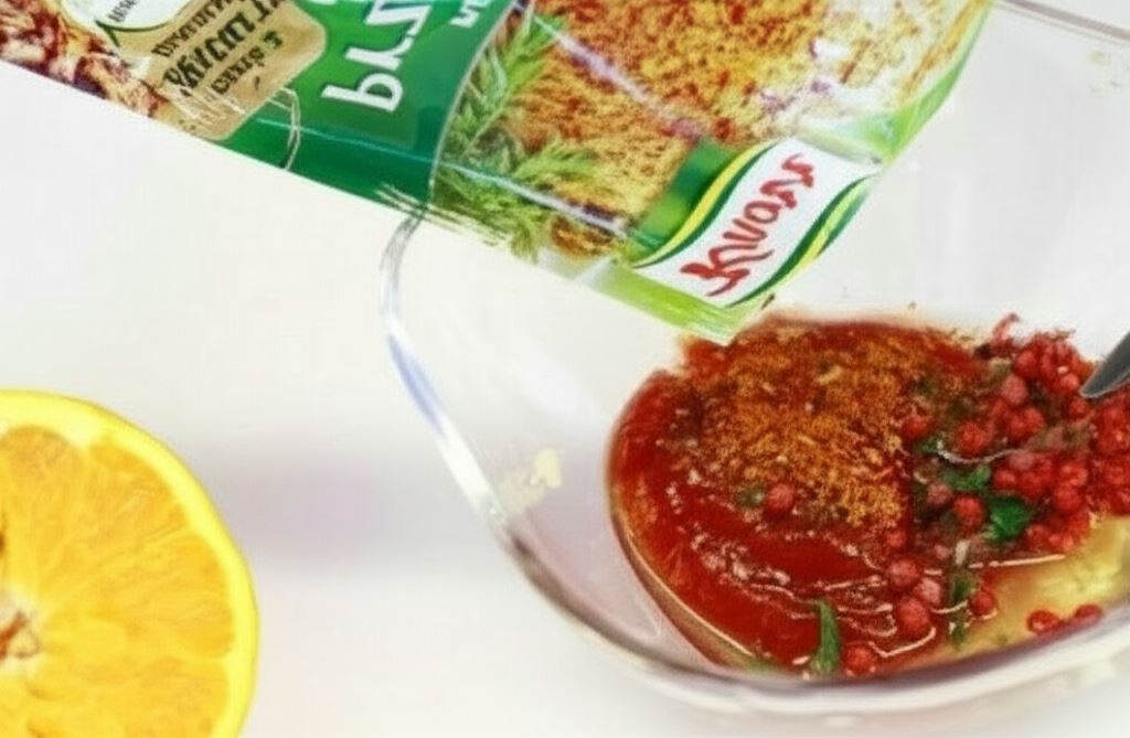 W międzyczasie przygotuj marynatę. Połącz ketchup z sokiem z pomarańczy, pieprzem cayenne, przeciśniętym przez praskę czosnkiem, gałką muszkatołową, kolendrą oraz przyprawą Knorr.