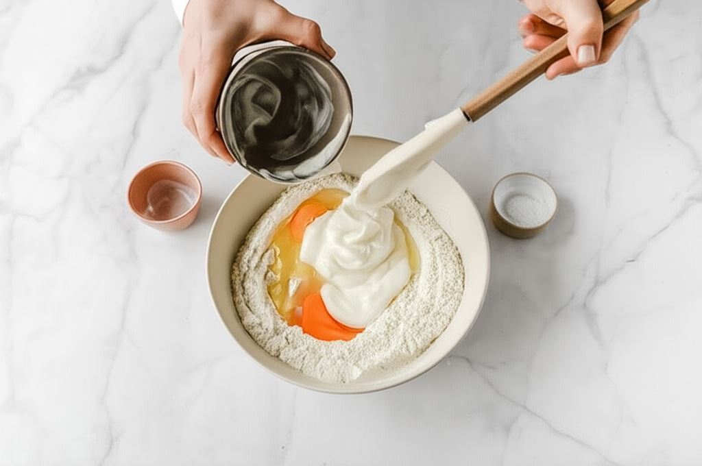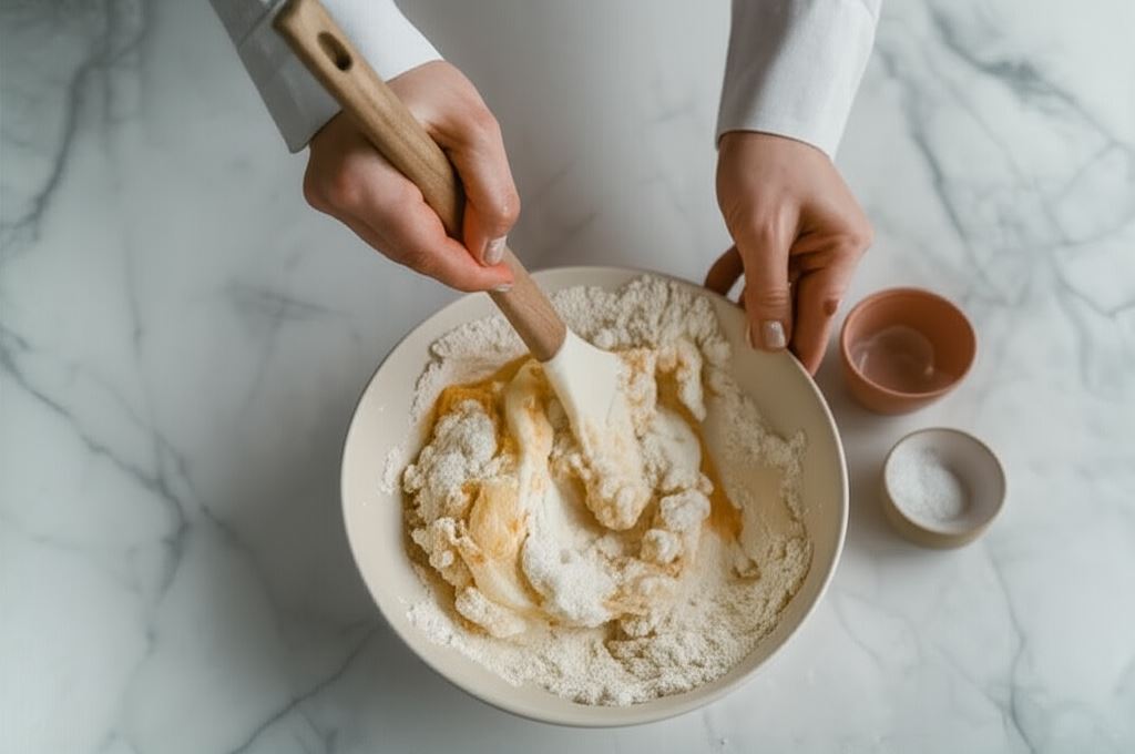 Ponownie wymieszamy do uzyskania jednolitej masy. Może to zająć dłuższy moment. Ciasto będzie dosyć gęste i lepkie.