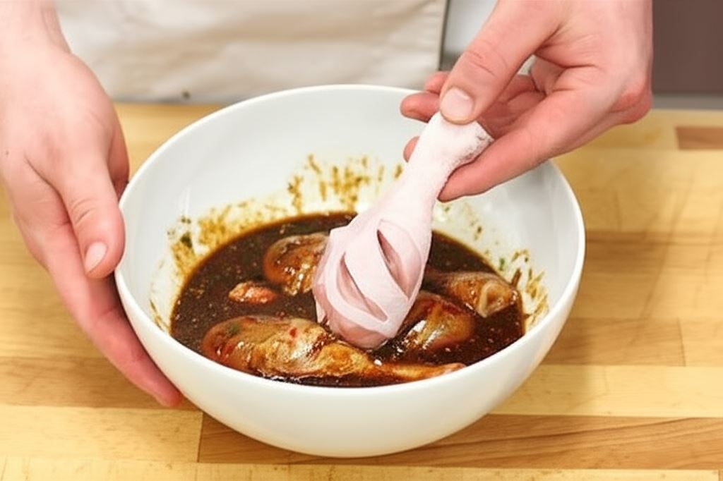 Umieść pałki z kurczaka w przygotowanej marynacie na około 12 godzin. Następnie odstaw całość w chłodne miejsce.