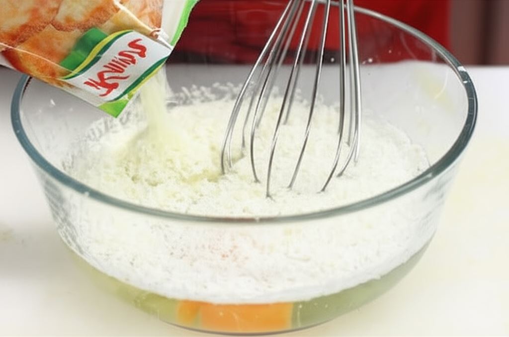 Zawartość opakowania Fix Knorr połącz z wodą, jajkiem i wiórkami kokosowymi. Odstaw przygotowane ciasto na 10 minut.