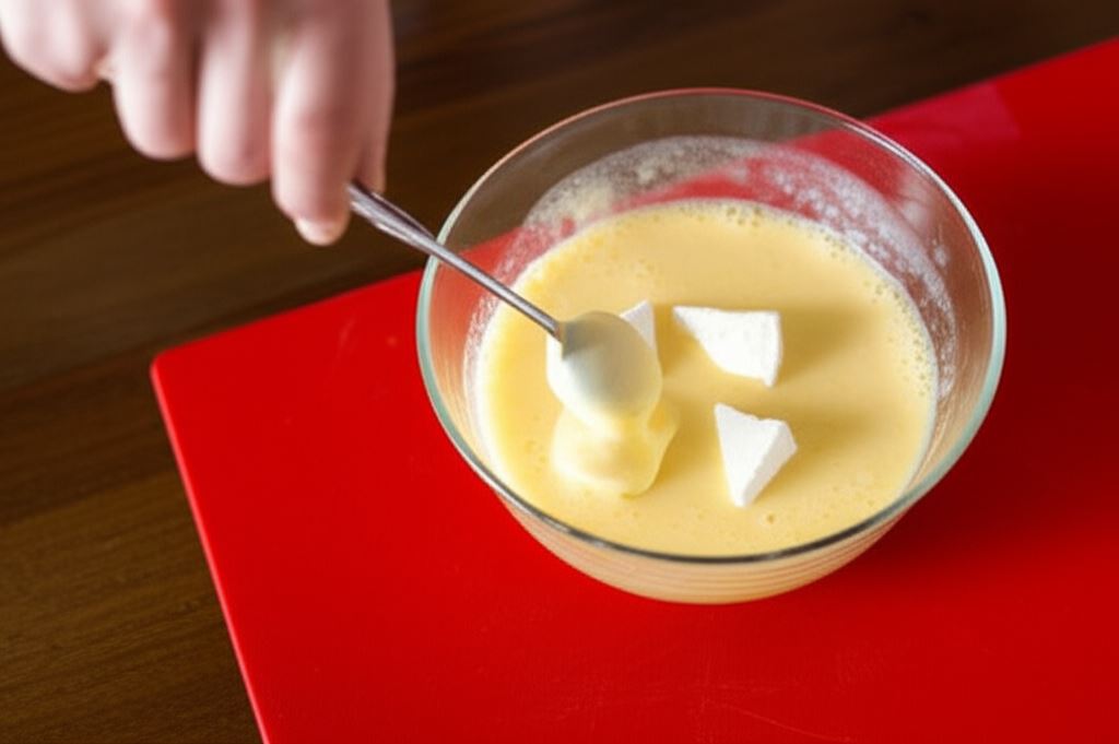 Kawałki sera posyp mąką, potem zanurzaj je w jajku zmieszanym z mlekiem, a na końcu obtocz w bułce tartej.