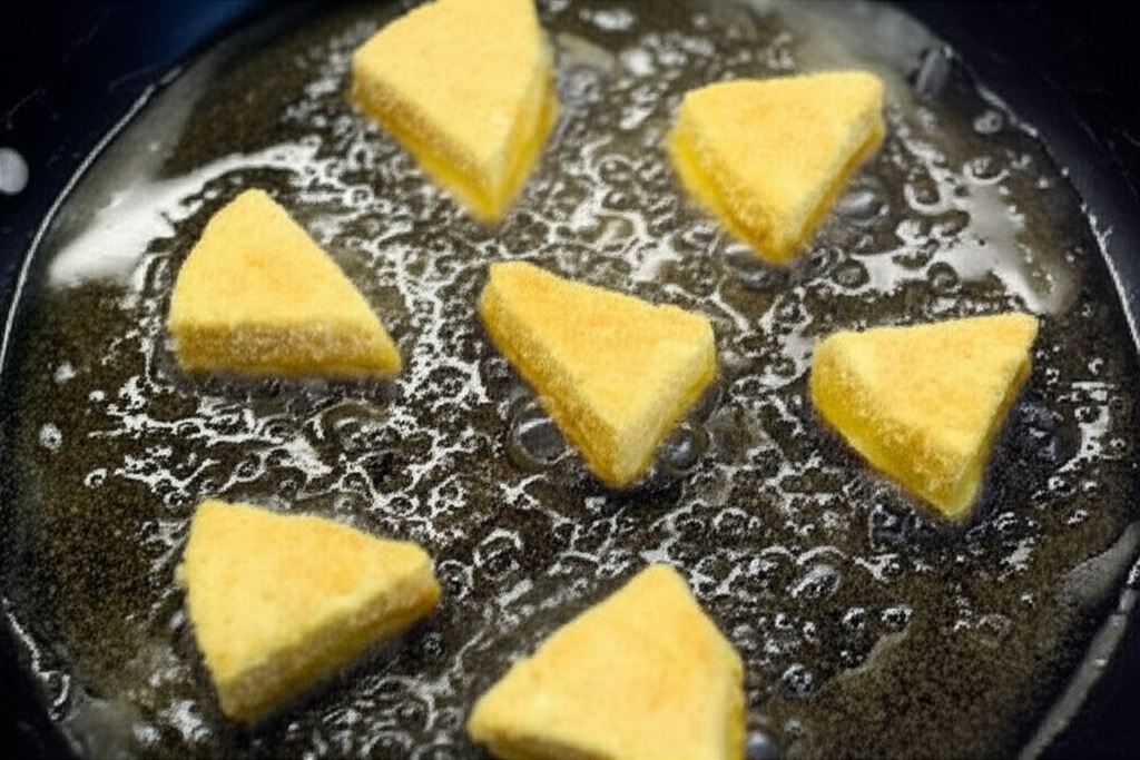 Serki smaż w głębokim tłuszczu, aż panierka stanie się złotobrązowa i chrupiąca. Po usmażeniu osusz serki na papierowym ręczniku.