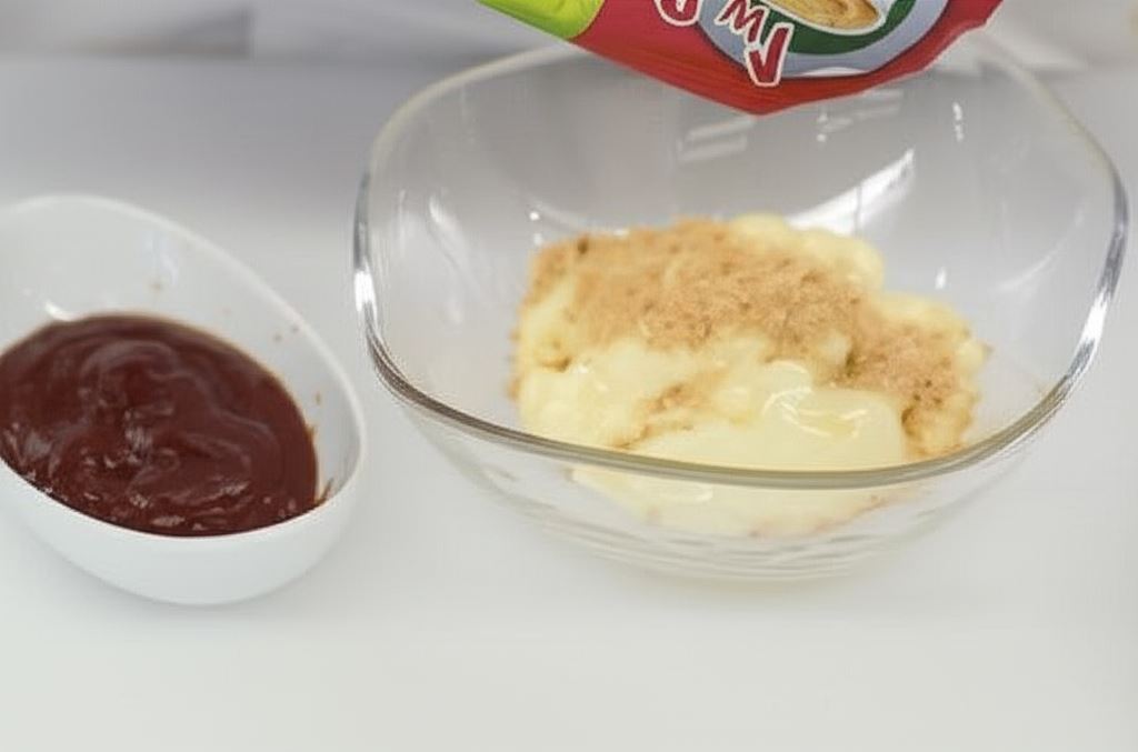 Majonez połącz z ketchupem i sosem meksykańskim z opakowania Fix Knorr. Koreczki z panierowanego sera serwuj z sosem osobno.