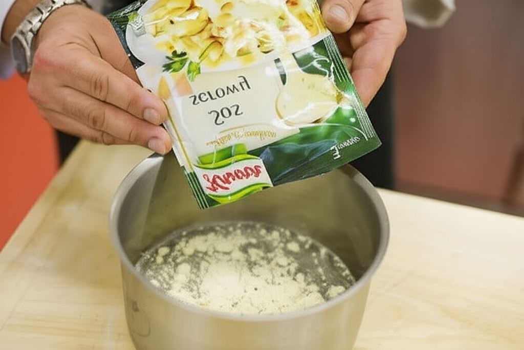 Do garnka wlej 300 ml zimnej wody, wsyp Fix Świderki z kurczakiem w sosie serowym Knorr, starannie wymieszaj i doprowadź do wrzenia, nieustannie mieszając, aż uzyskasz sos. Upieczone parówki serwuj z sosem serowym w miseczce oraz preferowaną surówką.