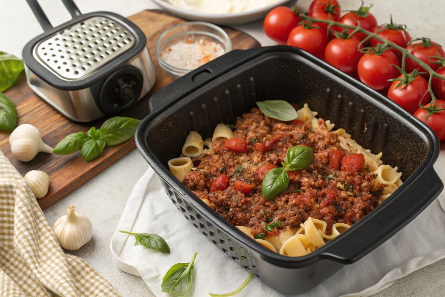 Czy wiesz, że airfryer może całkowicie odmienić tradycyjne danie makaronu z mięsem mielonym, nadając mu chrupiącą teksturę i intensywniejszy smak przy jednoczesnym skróceniu czasu przygotowania o nawet 40%?