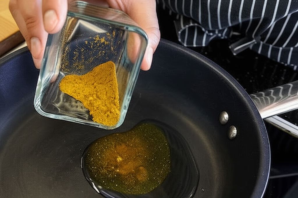 Rozgrzej delikatnie olej na patelni i dodaj Kurkumę Knorr.