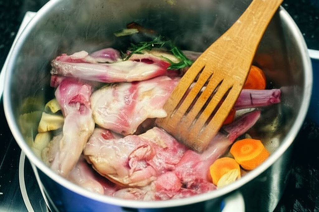 Sekret doskonałego pasztetu tkwi w powolnym duszeniu mięsa z warzywami, rozmarynowym aromatem i dodatkiem Kostki do mięs pieczeniowej Knorr, która wydobywa głębię smaku. Połączenie delikatnego mięsa królika z wątróbką i boczkiem tworzy harmonijną kompozycję, która po upieczeniu zachwyca aksamitną konsystencją i bogatym smakiem.