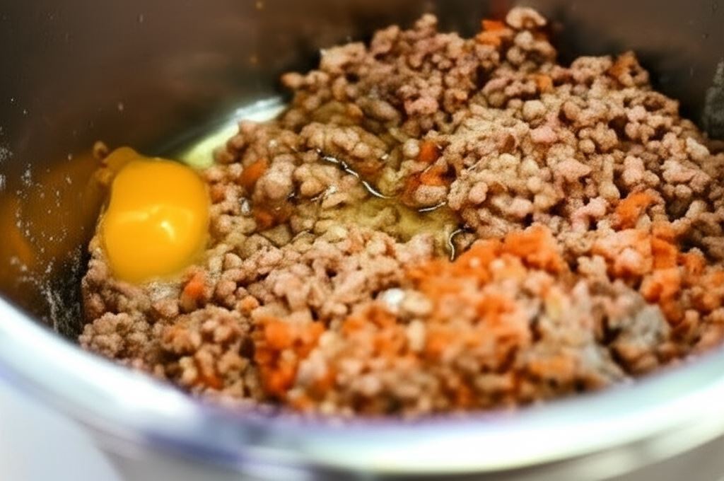 Schłodzone mięso razem z warzywami, boczkiem i wątróbkami przepuść przez maszynkę. Do przygotowanej masy wsyp jajka, przypraw solą i pieprzem, po czym starannie wymieszaj.