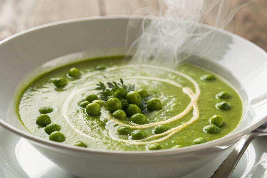 Profesjonalna wskazówka: Zamiast śmietany, zagęść zupę puree z gotowanego ziemniaka lub kalafiora – zachowasz intensywny smak groszku bez dodatkowych kalorii.