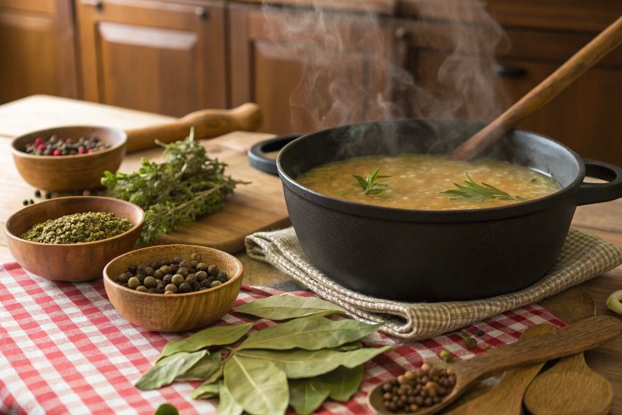 Sekret wyrazistego smaku zupy grochowej tkwi w świeżości ziół – nawet suszone przyprawy zachowują intensywność aromatu przez maksymalnie 6 miesięcy od otwarcia opakowania.