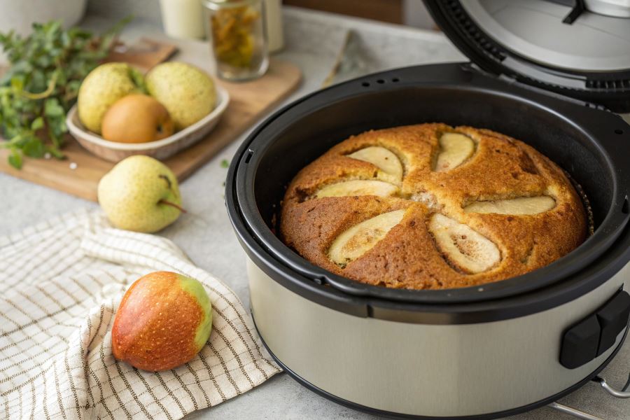 Ciasto z gruszką przygotowane w multicookerze zachowuje więcej wilgoci i aromatu owoców, co przekłada się na intensywniejszy smak i bardziej aksamitną konsystencję.
