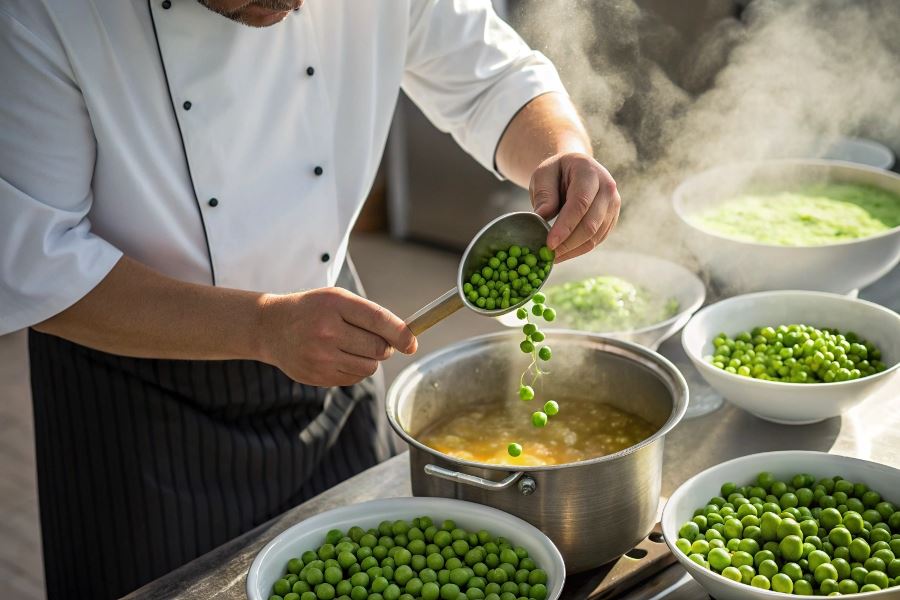 Profesjonalna wskazówka: Jeśli używasz mrożonego groszku premium, nie rozmrażaj go przed dodaniem do zupy. Dodaj bezpośrednio do gorącego wywaru – zachowa więcej składników odżywczych niż groszek rozmrożony.