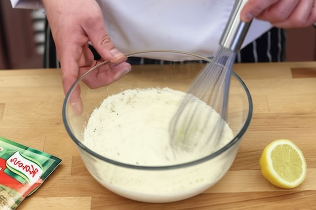 Wymieszaj fix Knorr ze śmietaną, 100 ml zimnej wody i przelej na patelnię. Gotuj całość przez moment, aż sos zacznie gęstnieć. Wlej sok z cytryny.