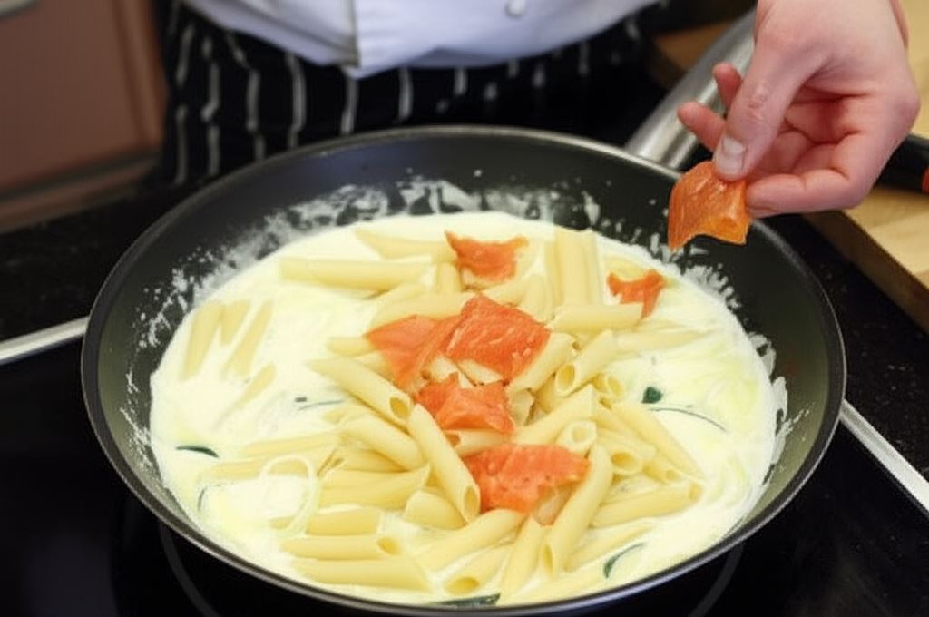 Penne z łososiem to prawdziwa perełka wśród dań makaronowych, która zachwyca harmonią smaków i prostotą przygotowania. Makaron al dente w towarzystwie delikatnego łososia, kremowego awokado i aromatycznego sosu tworzy kompozycję, która zadowoli nawet najbardziej wymagające podniebienia. Aksamitny sos na bazie śmietany i Fixu Knorr, wzbogacony orzeźwiającym sokiem z cytryny, otula każdy kawałek makaronu, nadając potrawie wyjątkowej kremowości.