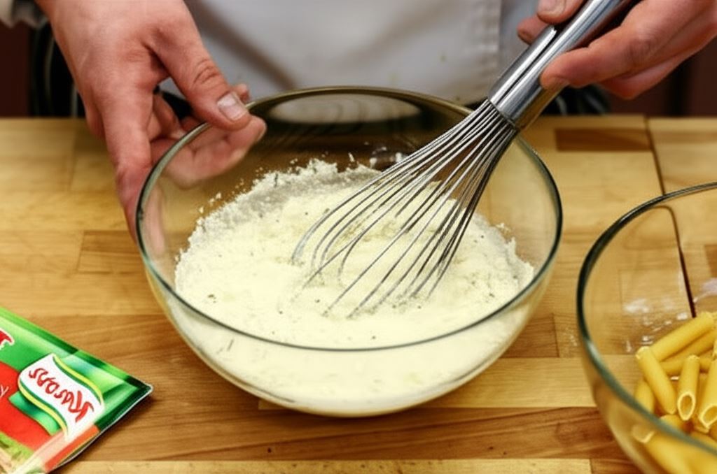 Makaron w zapiekance nie wymaga wcześniejszego gotowania – surowe penne zmięknie podczas pieczenia w sosie, zachowując idealną konsystencję. Dzięki temu oszczędzasz czas i zmniejszasz ilość naczyń do mycia. Sekret udanej zapiekanki tkwi w dokładnym przykryciu naczynia folią aluminiową podczas pierwszego etapu pieczenia, co pozwala składnikom równomiernie się ugotować.