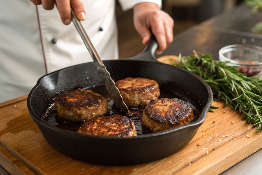 Metoda sear and rest to technika stosowana przez profesjonalnych szefów kuchni, polegająca na intensywnym obsmażeniu kotleta z obu stron przez 2-3 minuty, a następnie odstawieniu go na 5-7 minut pod przykryciem z folii aluminiowej. Podczas odpoczynku soki równomiernie rozprowadzają się w mięsie, co zapobiega ich wyciekaniu podczas krojenia i zapewnia niezrównaną soczystość.