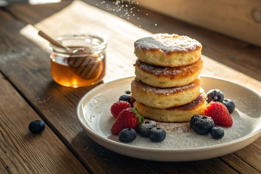 Syrniki to tradycyjne placuszki twarogowe, które zyskały ogromną popularność w kuchni wschodnioeuropejskiej dzięki swojej prostocie i wyjątkowemu smakowi. Ich nazwa pochodzi od słowa „syr” oznaczającego ser, co bezpośrednio nawiązuje do głównego składnika – twarogu. Te delikatne, puszyste placuszki stanowią doskonałą propozycję na śniadanie lub podwieczorek, łącząc w sobie słodko-kwaskowaty smak sera z chrupiącą skórką.