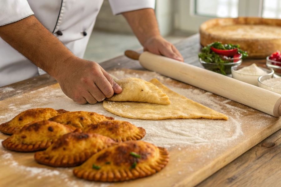 Profesjonalna wskazówka: Przed zamknięciem czebureka zwilż brzegi ciasta wodą lub roztrzepanym jajkiem – znacznie poprawi to szczelność podczas smażenia.