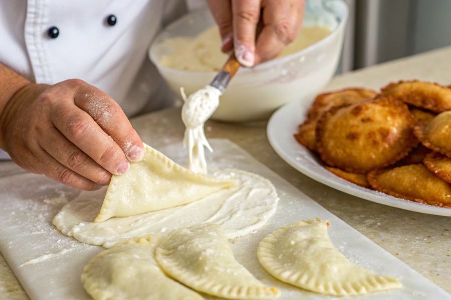 Sekret profesjonalnych kucharzy: połączenie obu rodzajów śmietany w proporcji 2:1 (kwaśna do kremówki) pozwala uzyskać ciasto łączące zalety obu wariantów – elastyczność podczas formowania i wyjątkową warstwową strukturę po usmażeniu.