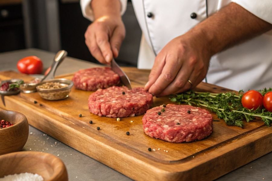 Doskonały kotlet burgerowy wyróżnia się przede wszystkim odpowiednią strukturą – jest jednocześnie zwarty i soczysty. W przeciwieństwie do tradycyjnych kotletów mielonych, kotlety burgerowe powinny zachowywać kształt podczas grillowania, jednocześnie pozostając delikatne w środku. Kluczową cechą jest także charakterystyczny smak wołowiny, który dominuje nad dodatkami. Profesjonalne kotlety burgerowe mają lekko chropowatą teksturę, która doskonale zatrzymuje sosy i dodatki.
