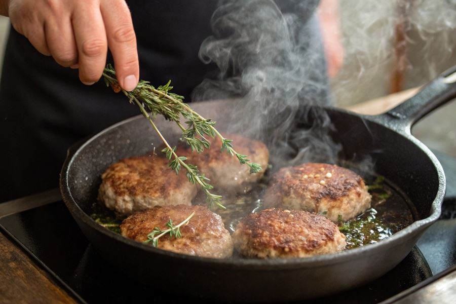 - Naczynie z powłoką nieprzywierającą – ułatwia kontrolę procesu i zapobiega przywieraniu mięsa