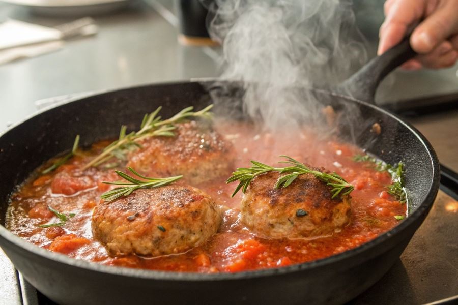 Profesjonalny trik: przed włożeniem kotletów do sosu warto dodać łyżkę masła – nada aksamitności i zbalansuje kwasowość pomidorów. Dla zachowania soczystości kotletów, nie mieszamy ich w sosie, a jedynie delikatnie potrząsamy patelnią lub obracamy łopatką.