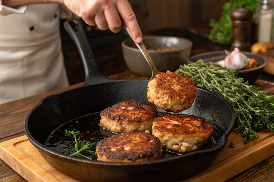 Temperatura smażenia ma fundamentalne znaczenie – zbyt niska spowoduje, że kotlety będą się rozpadać i wchłaniać tłuszcz, zbyt wysoka doprowadzi do przypalenia powierzchni przy surowym wnętrzu. Optymalna temperatura to 160-170°C, którą najłatwiej osiągnąć rozgrzewając patelnię na średnim ogniu przez 3-4 minuty.