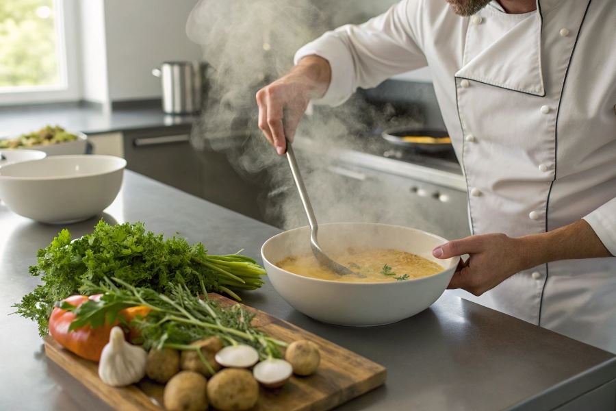Kluczowym trendem 2025 roku jest łączenie zupy z elementami fermentowanymi – kimchi, kiszona kapusta czy fermentowany czosnek nadają głębi smakowej. Popularnością cieszą się również:
