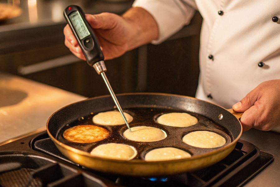 Zbyt wysoki ogień powoduje przypalanie zewnętrznej warstwy naleśnika, podczas gdy środek pozostaje surowy. Zbyt niski sprawia, że ciasto przywiera do patelni i staje się gumowate.