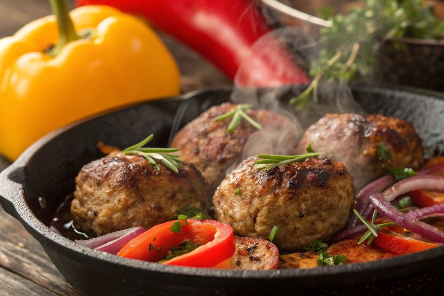 Sekret idealnego połączenia polega na dodawaniu warzyw w odpowiedniej kolejności. Najpierw smażymy pulpety do zarumienienia, następnie dodajemy warzywa wymagające dłuższej obróbki, a na końcu te delikatniejsze. Sos powstaje naturalnie z połączenia soków z mięsa i warzyw, wzbogacony odrobiną bulionu i przypraw. Finalny akord to przykrycie patelni na ostatnie 2-3 minuty, co pozwala aromaty się połączyć.