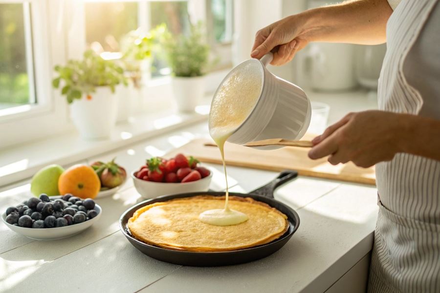 Profesjonalny trik: dodaj do ciasta 2 łyżki wody gazowanej tuż przed smażeniem – naleśniki będą bardziej puszyste i elastyczne.
