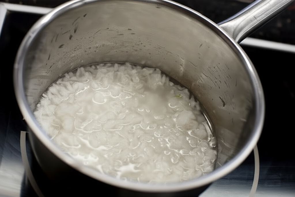 Wlej ryż 4 szklankami wrzątku i gotuj aż będzie miękki.
