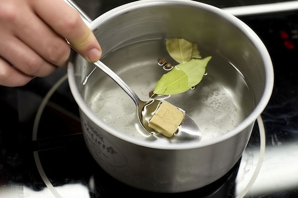 Po tym czasie, gdy golonki będą miękkie, przenieś je do garnka. Uzyskany wywar wlej do garnuszka i gotuj moment, aby zmniejszyć jego objętość.