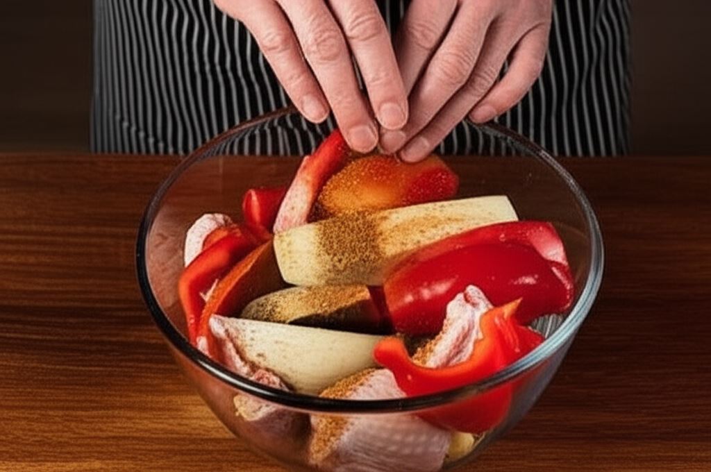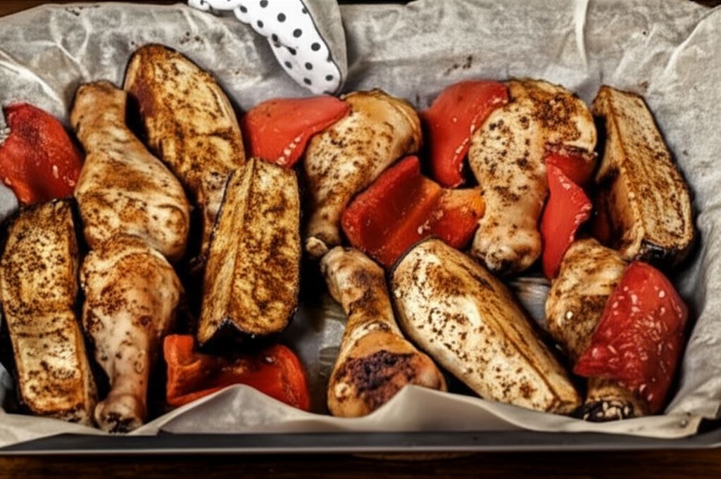 Odkryj niezwykłe połączenie smaków Bliskiego Wschodu w prostym, ale wyrazistym daniu! Soczyste podudzia z kurczaka pieczone z bakłażanem i czerwoną papryką to prawdziwa uczta dla podniebienia. Mięso podczas pieczenia nabiera złocistego koloru i chrupiącej skórki, pozostając jednocześnie delikatne i soczyste w środku. Bakłażan i papryka dopełniają smaku, dodając potrawie charakteru i aromatu.
