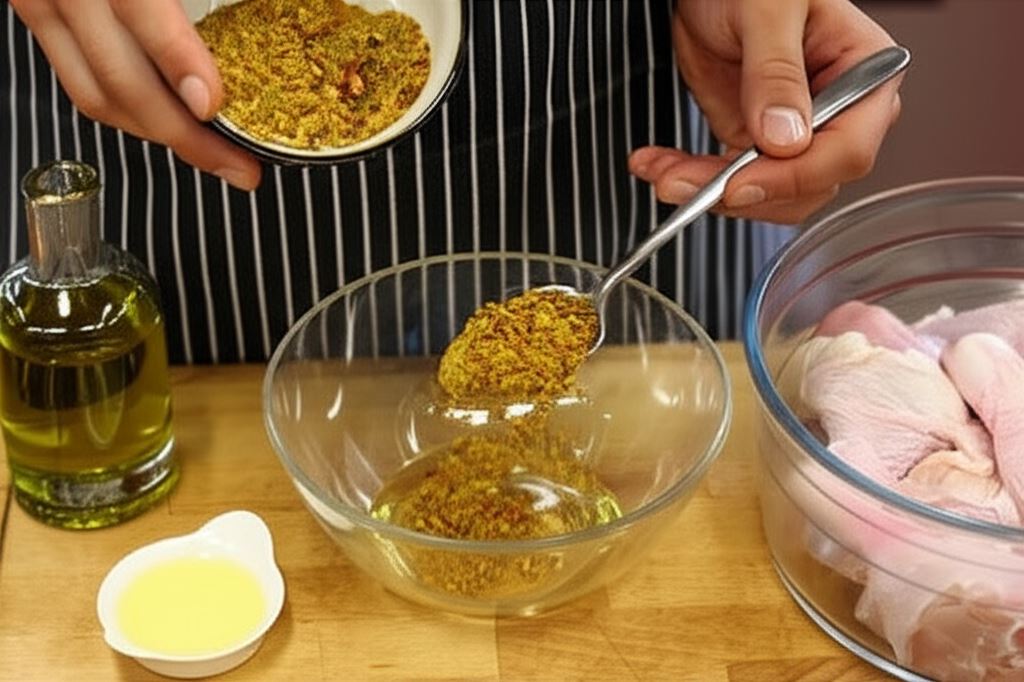 Trzy łyżki oliwy połącz z dwiema łyżkami przyprawy Knorr oraz sokiem z cytryny. Udka kurczaka opłucz, wysusz, zamieszaj w marynacie, odłóż najlepiej na 12 godzin.