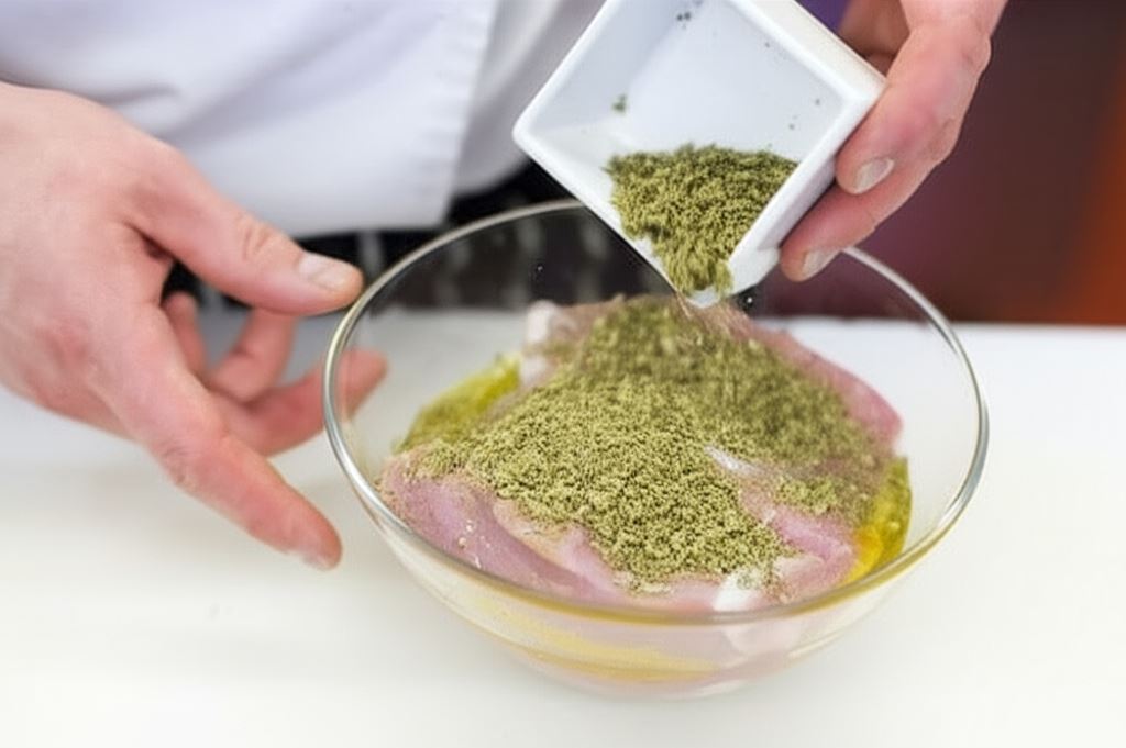 Sporządź marynatę. Wymieszaj olej z wodą, Przyprawą Knorr i majerankiem Knorr. Posmaruj mięso połową marynaty.