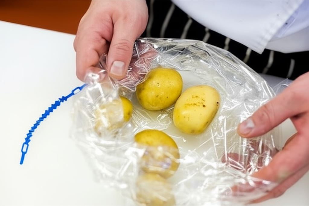 Ziemniaki dokładnie obmyj, potem wysusz, większe przetnij na połowę i połącz z resztą marynaty.