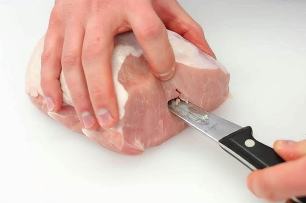 Wzdłuż całej długości schabu wykonaj nacięcie przy użyciu długiego noża.