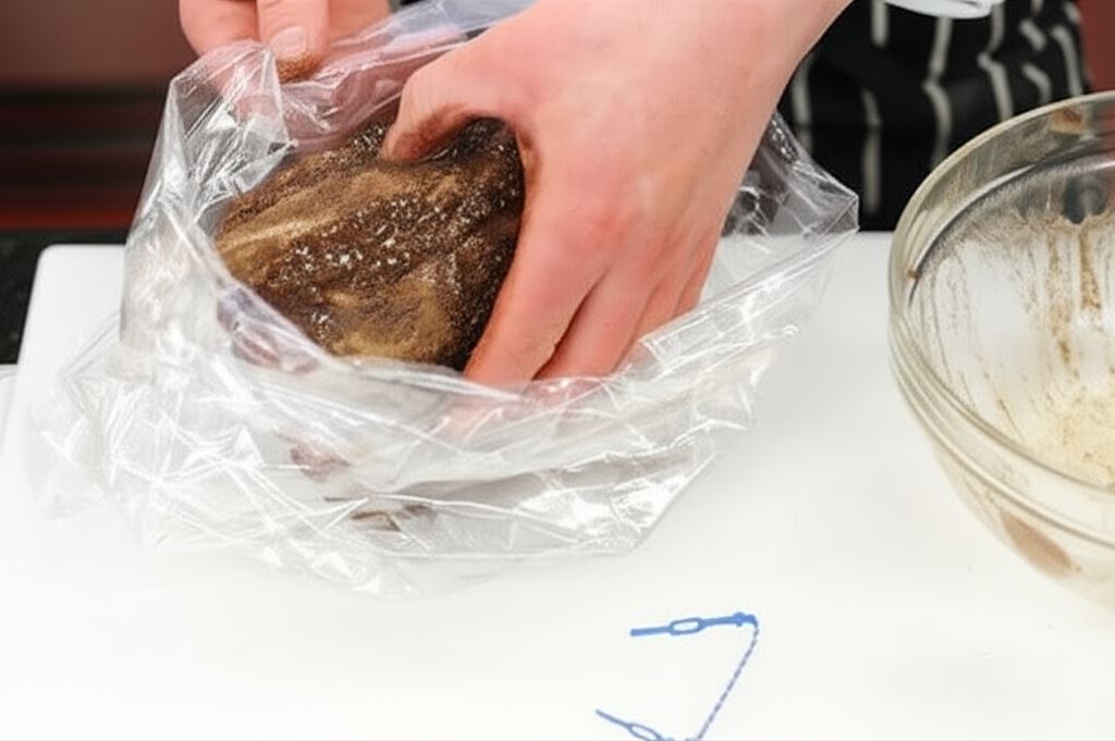 Otrzymaną mieszaniną posmaruj schab. Mięso włóż do dołączonego rękawa do pieczenia zamykając go klipsem.