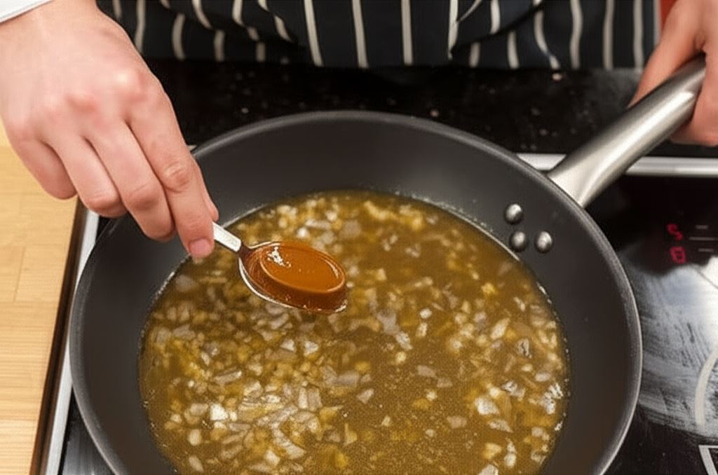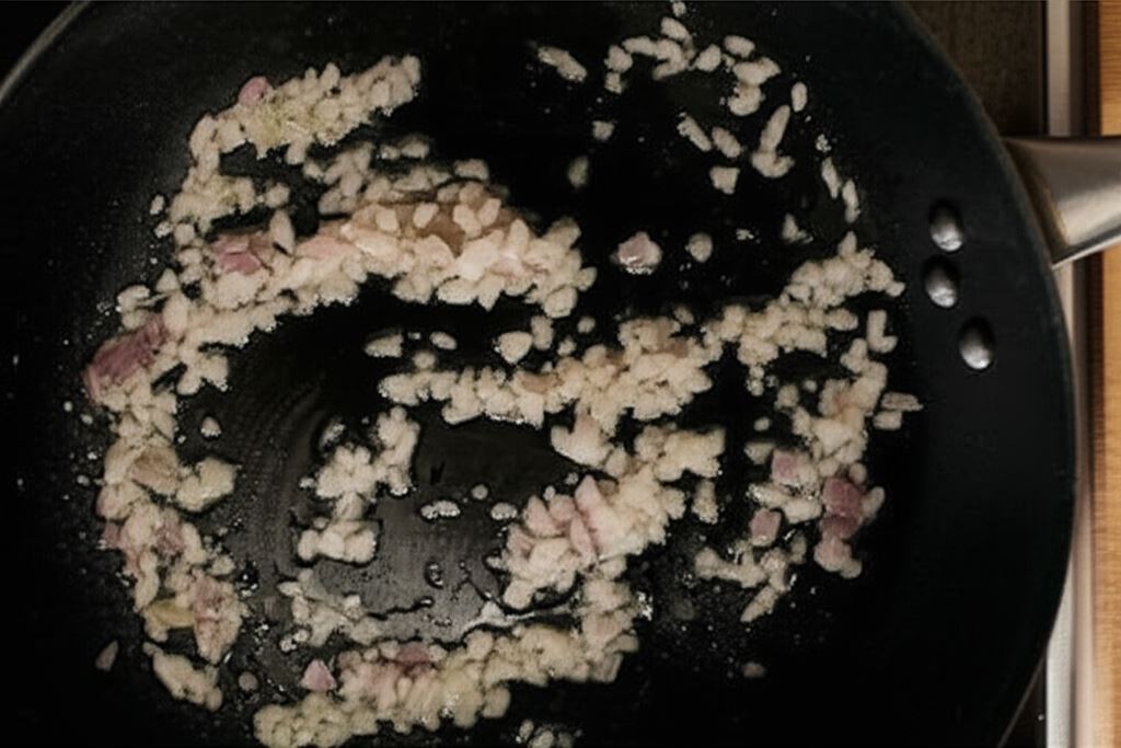 Na rozgrzanym tłuszczu zrumień pokrojoną w drobną kostkę szalotkę.