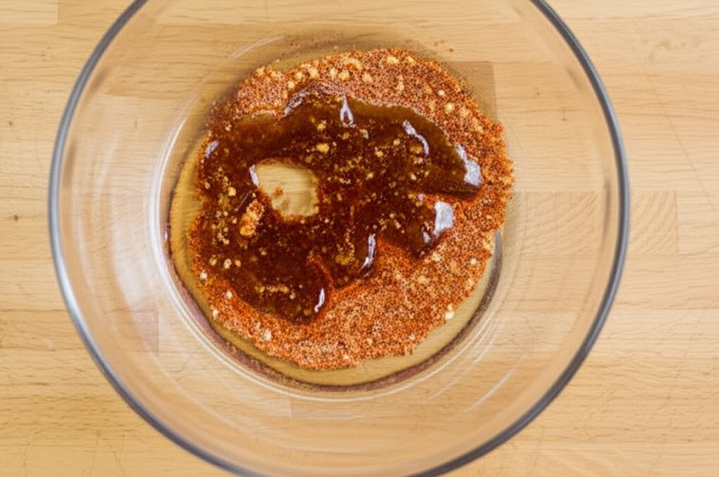 Przyprawę połącz z 3 łyżeczkami oleju i powstałą w ten sposób marynatą natrzyj mięso. Indyka odstaw do zamarynowania na kilka godzin.