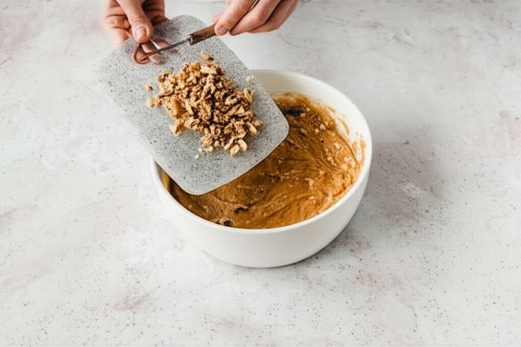 Potem wsypujemy drobno posiekane orzechy włoskie. Zagniatamy ciasto do momentu, aż będzie elastyczne. Może to zająć około 10 min. Ciasto umieszczamy w szklanym pojemniku, nakrywamy ściereczką i odstawiamy do lodówki na około 3 tygodnie.