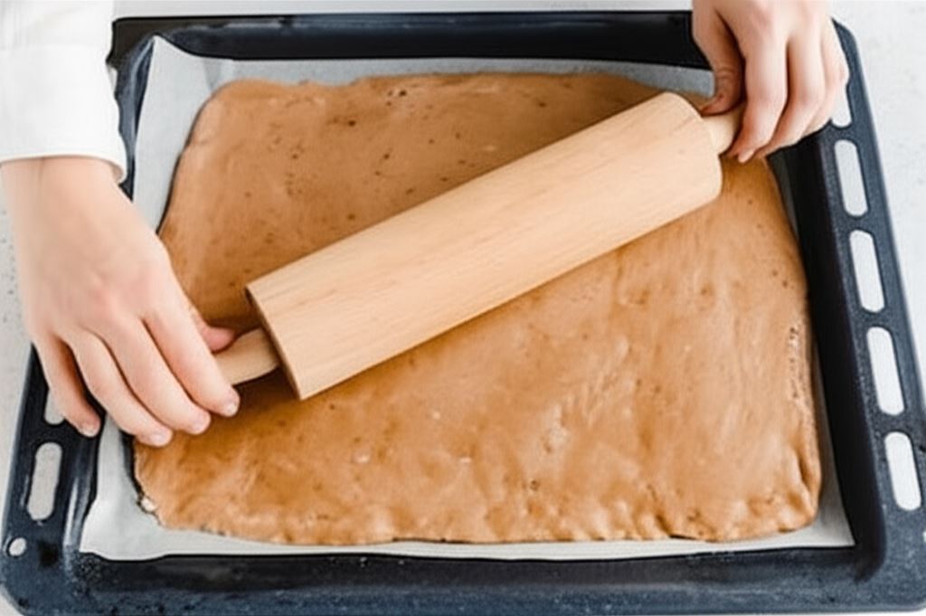 Po tym czasie rozciągamy ciasto na blaszce i wypiekamy w piekarniku rozgrzanym do 180 C około 30 min.