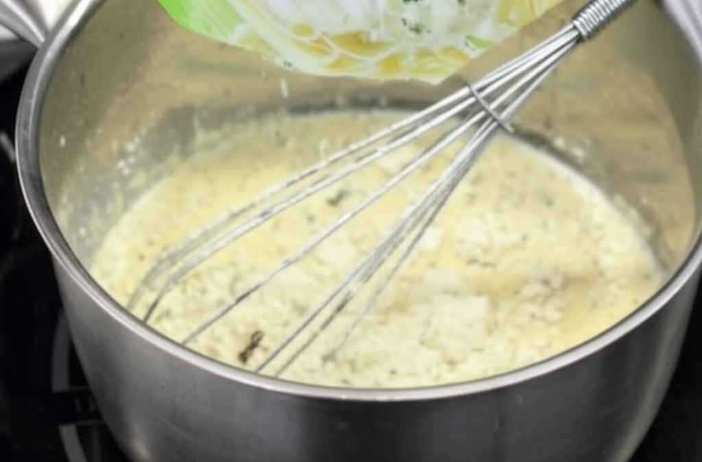 Wymieszaj fix Knorr ze śmietaną, wlej 150 mililitrów wody, zagotuj, a potem połącz z pomidorami i szpinakiem, przyprawiając pieprzem cayenne. Gotuj krótko. Ugotowane pierogi serwuj ciepłe z sosem.